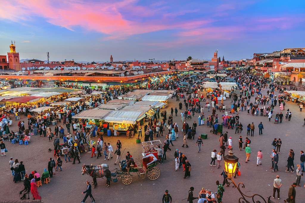 第3天来到喧闹的马拉喀什,在活色生香的德吉玛广场感受日落氛围,欣赏圣罗兰梦幻的非洲花园。花2天时间看看这座城市的市集、街头表演者和王室建筑构成的令人迷醉的混搭风景。在摩洛哥,说到传统与现代的融合,恐怕再也没有马拉喀什做得更好的地方了。马拉喀什是耀眼的,也是破旧的,但它始终具有一种吸引人的魔力。