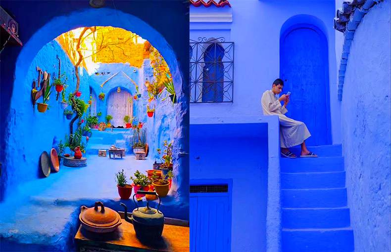 第9天到达里夫山区的舍夫沙万,这里的老城呈现给世人的是华丽的淡蓝色。舍夫沙万老城街道陡峭,铺设了鹅卵石,红色屋顶、锻铁阳台和天竺葵沿着山腰向下泼洒。碧蓝的巷道如有魔力,让这座城镇成为摄影师实现梦想的地方。