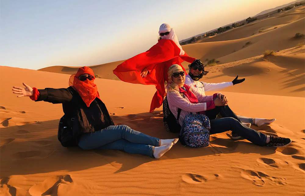 第6天前往梅尔祖卡,这是摩洛哥通往撒哈拉的门户。然后骑着骆驼前往鬼斧神工的撒哈拉沙漠,在星空下入眠。不防计划一下日落时骑骆驼、参加篝火旁的音乐会以及欣赏漫天繁星的夜晚,然后在第二天清晨爬上附近的沙丘欣赏日出。